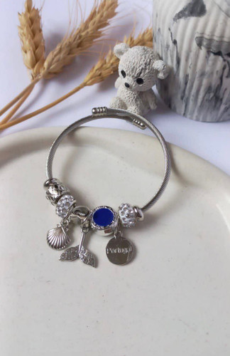 دستبند پاندورا آبی با چارمهای جدید و پر کار